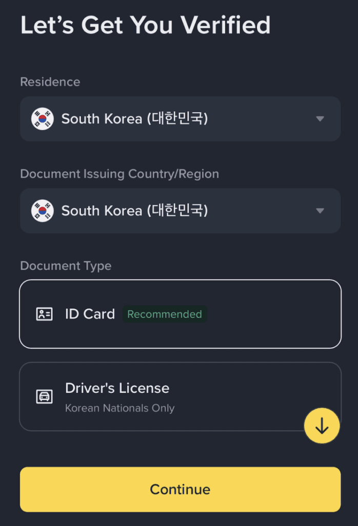 KYC인증 방법은 내용이나 인터페이스가 변경될 때가 있습니다.