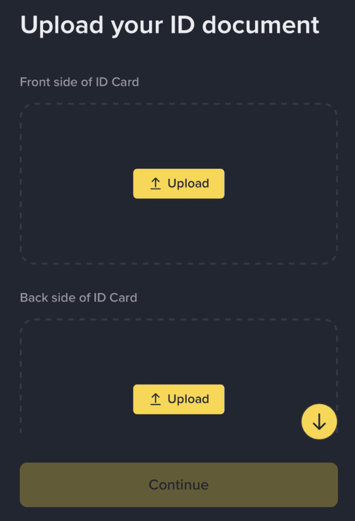 신분증의 앞을 Front side of ID Card에, 신분증의 뒷면은 Back side of ID Card에 올려준 뒤 Continue를 클릭합니다.