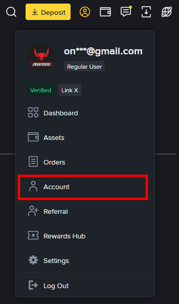 2. 우측 상단의 [사람 모양 아이콘] 클릭, Account 메뉴를 클릭합니다.