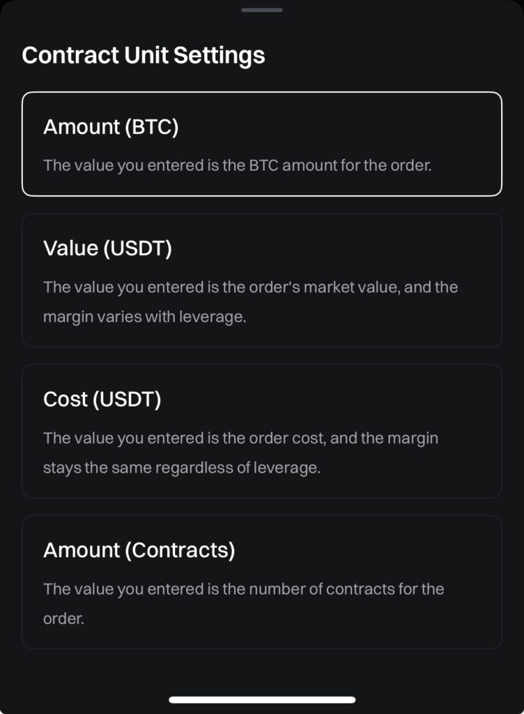 입력한 값은 주문의 계약 수량입니다. 코인만 거래하는 형식에서는 일반적으로는 잘 사용하지 않는데, CFD나 해외선물거래를 하는 분들에게 익숙한 단위입니다.