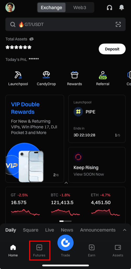 게이트 홈 하단에서 Futures를 클릭해주세요.
