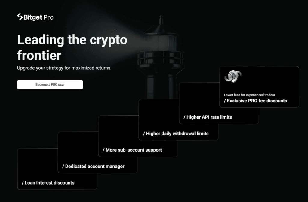 PRO 등급 | Bitget 보유 자산 (USDT 기준) | 또는 타 거래소 PRO/VIP 인증 |