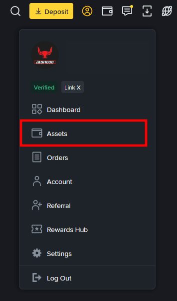 2. 내 정보 아이콘을 클릭한 후 Assets를 클릭합니다.